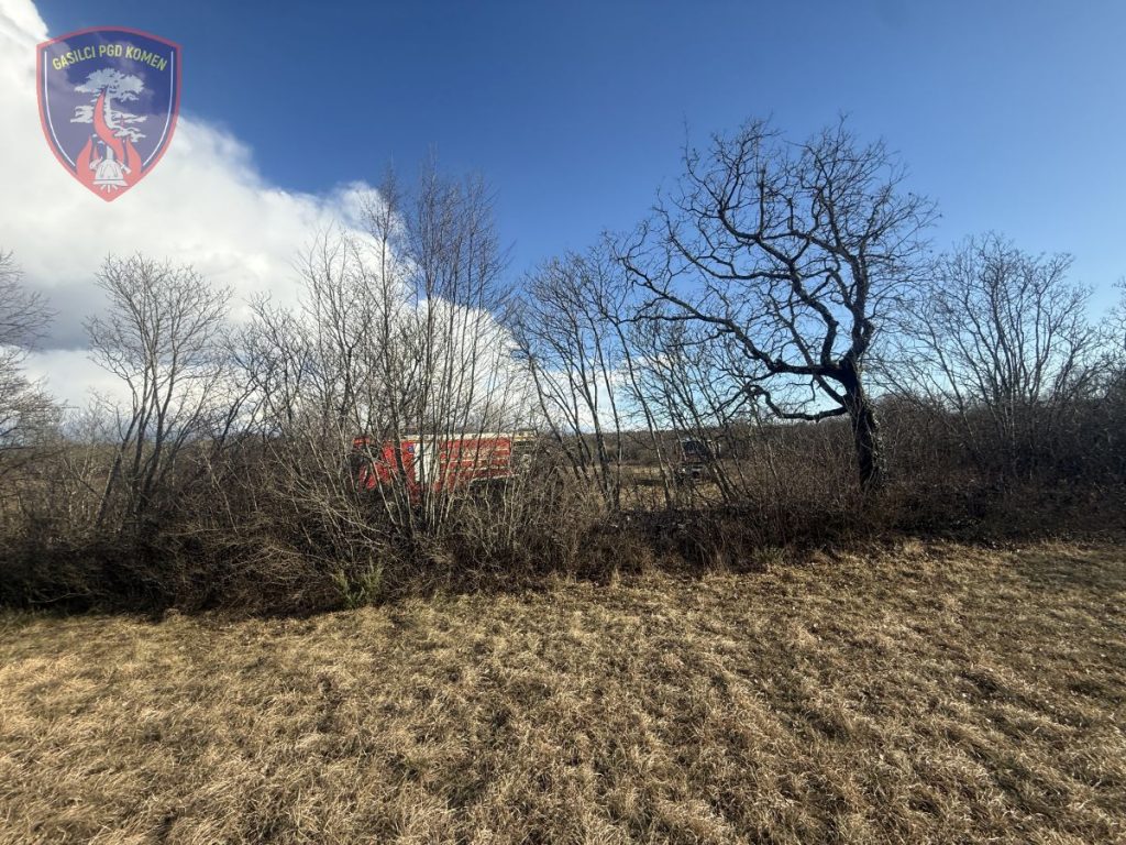 ReCo Postojna nas je ob 15:06 obvestil o požaru v naravnem okolju pri vasi Hruševica. Na lokaciji je bil prisoten prijavitelj , ki je s pomočjo priročnih sredstev požar omejil. Skupaj z ZGRS Sežana smo zalili rob požara. Požar je zajel tudi manjšo deponijo, ki smo jo dodatno zalili z vodo ter prekopali. Pogorelo je cca. 500m2 travnate površine. Na lokaciji je bila prisotna tudi policija. Na intervenciji je sodelovalo 6 gasilcev PGD Komen z dvema voziloma, 3 gasilci z enim vozilom iz ZGRS Sežana. V gasilskem domu so bili v pripravljenosti še 3 gasilci.