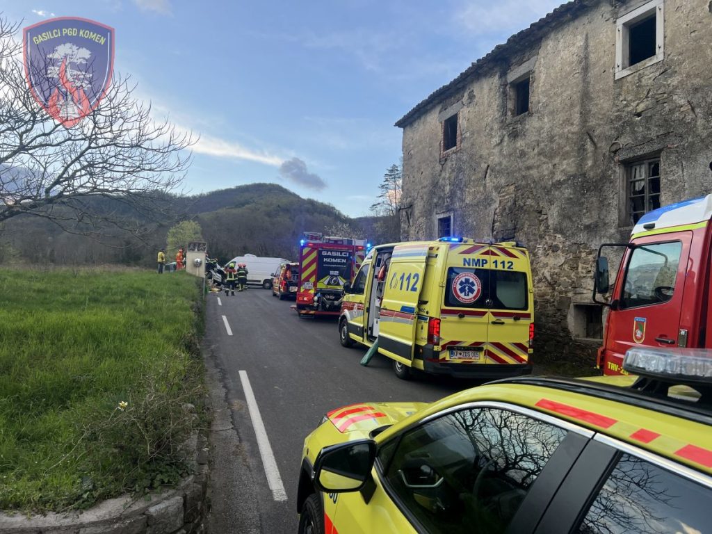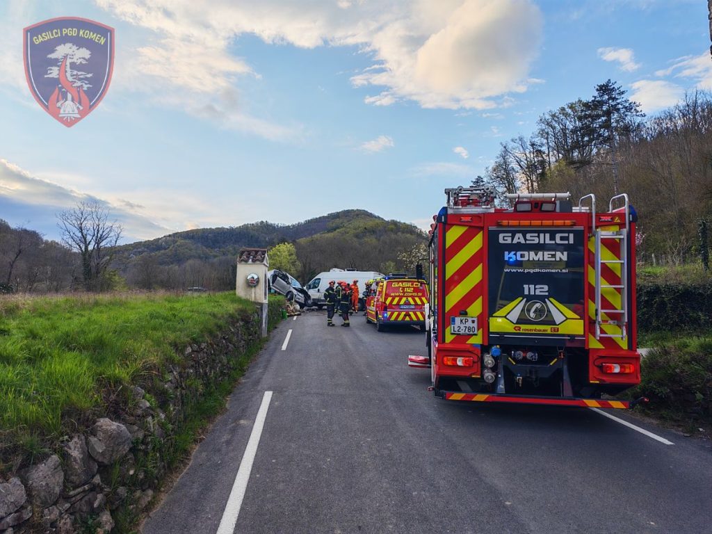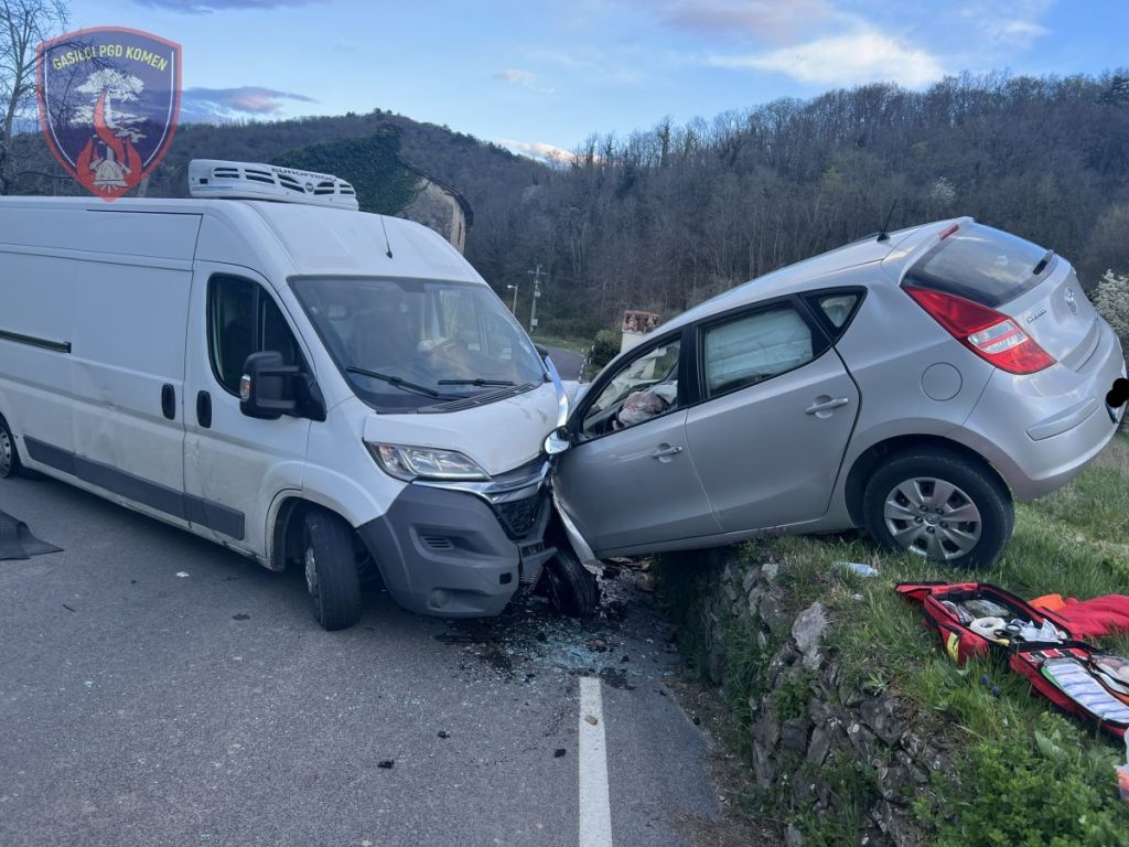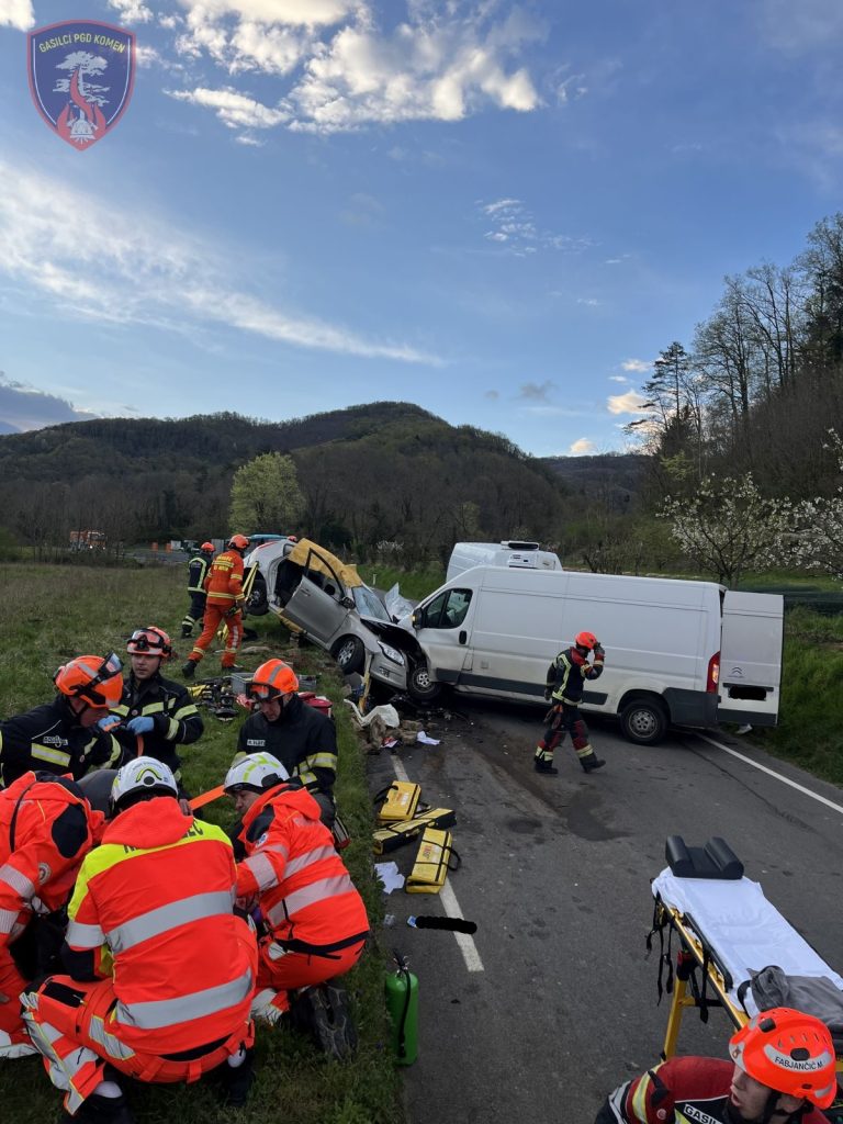 Ob 6.41 sta v naselju Trebižani, občina Komen, čelno trčila voznika osebnega in kombiniranega vozila. V nesreči je bila ena oseba telesno poškodovana in ujeta v vozilu. Gasilci ZGRS Sežana in PGD Komen smo zavarovali mesto nesreče, s tehničnim posegom iz vozila rešili poškodovano osebo, pomagali reševalcem pri oskrbi in prenosu, ter odklopili akumulatorje. Ekipa NMP Sežana je poškodovano osebo oskrbela in prepeljala na nadaljnje zdravljenje v šempetrsko bolnišnico. Na intervenciji je sodelovalo 7 gasilcev PGD Komen z enim vozilom, dva gasilca PGD Komen, ki sta bila v bližini dogodka, 3 gasilci z enim vozilom iz ZGRS Sežana, reševalci NMP Sežana, policija in cestna služba. V gasilskem domu je bilo v pripravljenosti še 6 gasilcev.