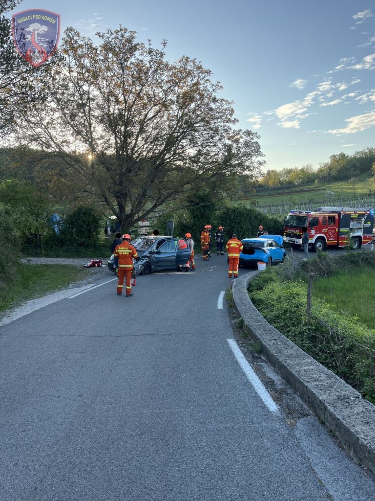 Pri naselju Zagradec sta trčili dve osebni vozili. Posredovali smo gasilci ZGRS Sežana in PGD Komen, kateri smo zavarovali kraj dogodka, nudili pomoč ekipi reševalcev NMP Sežana pri oskrbi ponesrečencev, na vozilih odklopili akumulator, ter sanirali razlite tekočine po cestišču. Na kraju je bila tudi Policija in dežurni delavec cestnega podjetja CPK. Na intervenciji je sodelovalo 7 gasilcev PGD Komen z enim vozilom, 3 gasilci z enim vozilom iz ZGRS Sežana, reševalci NMP Sežana, policija in cestna služba. V gasilskem domu je bilo v pripravljenosti še 6 gasilcev.