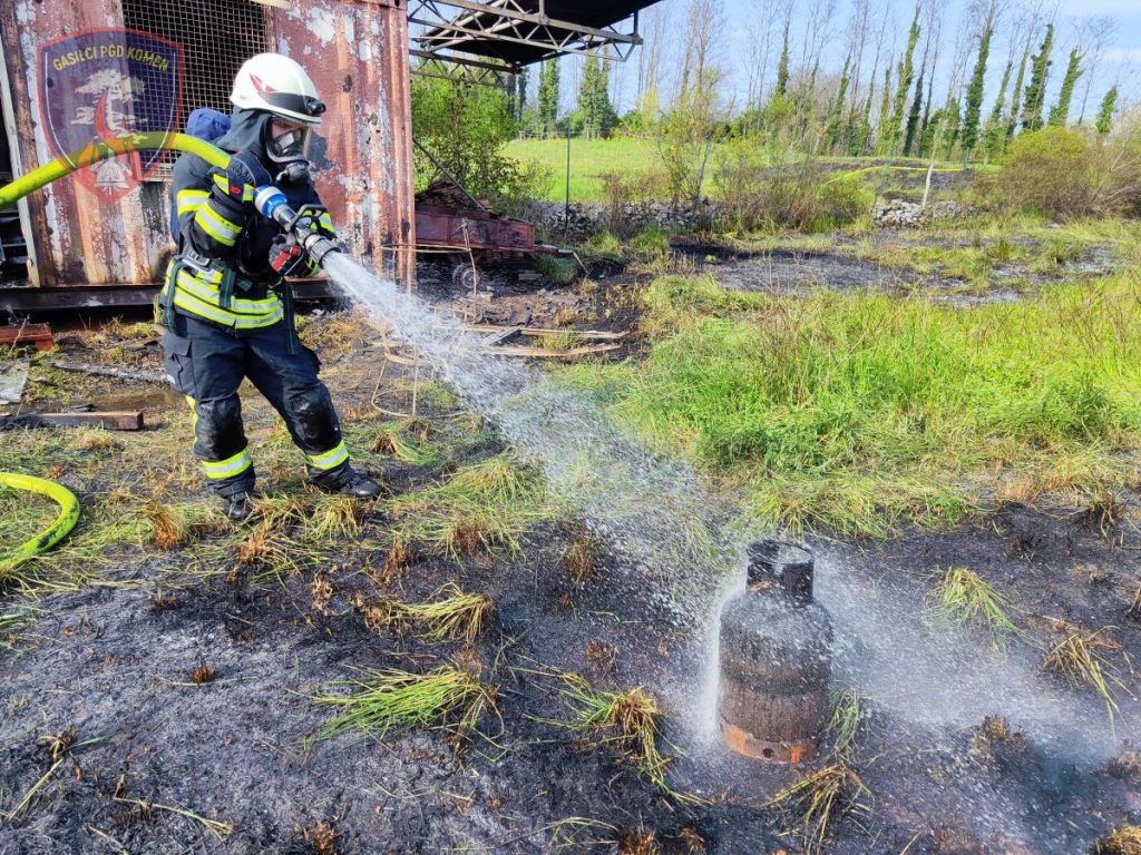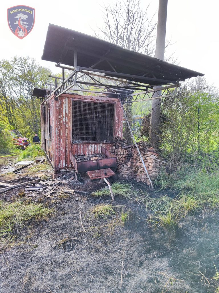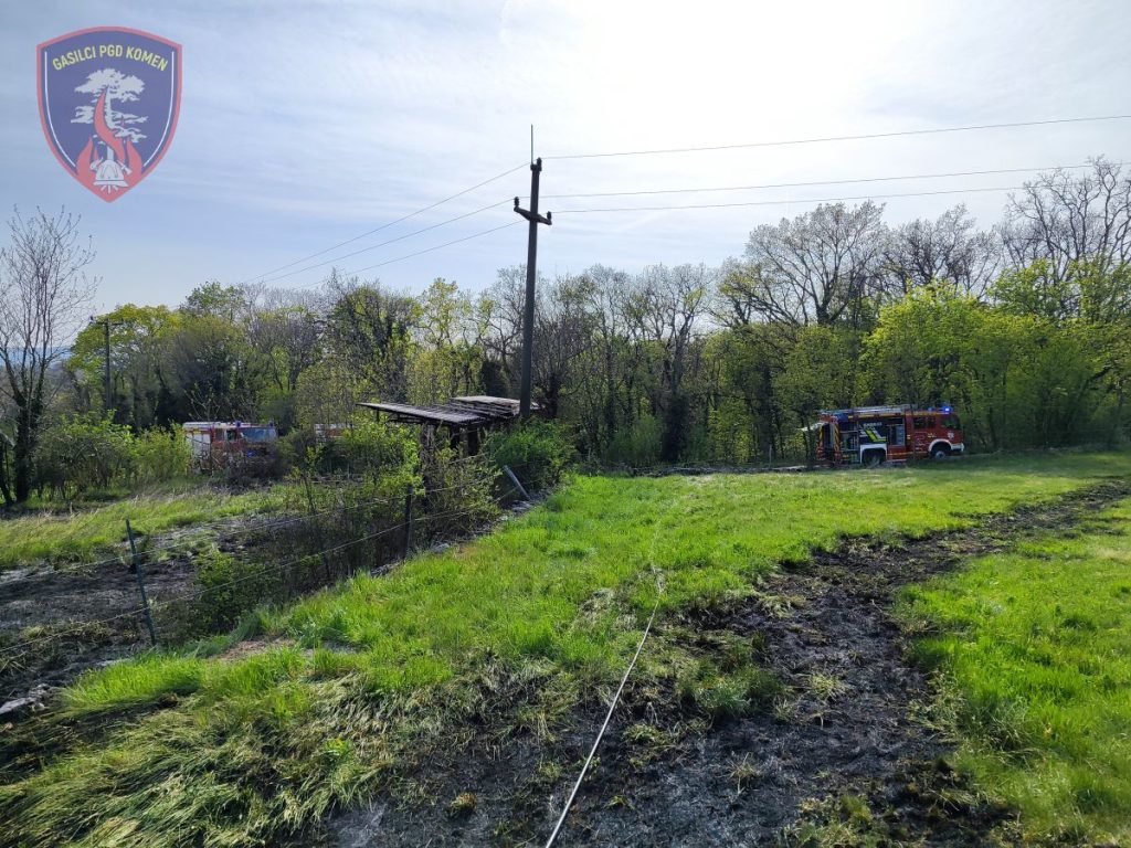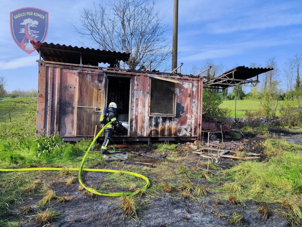 Ob 15:29 je med Preserjem pri Komnu in Svetem občina Komen, gorela kontejnerska baraka. Posredovali smo gasilci PGD Komen in ZGRS Sežana, ki smo pogasili travniški požar na dva tisoč kvadratnih metrih in kontejnersko barako na petnajstih kvadratih. Iz barake smo iznosili vnetljive snovi in vse skupaj dodatno zalili z vodo. Na intervenciji je sodelovalo 14 gasilcev PGD Komen s štirimi vozili. Iz poklicne gasilske enote ZGRS Sežana so sodelovali trije gasilci z enim vozilom.