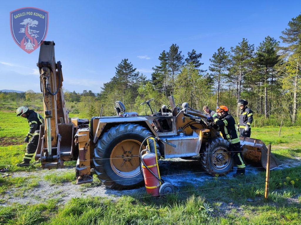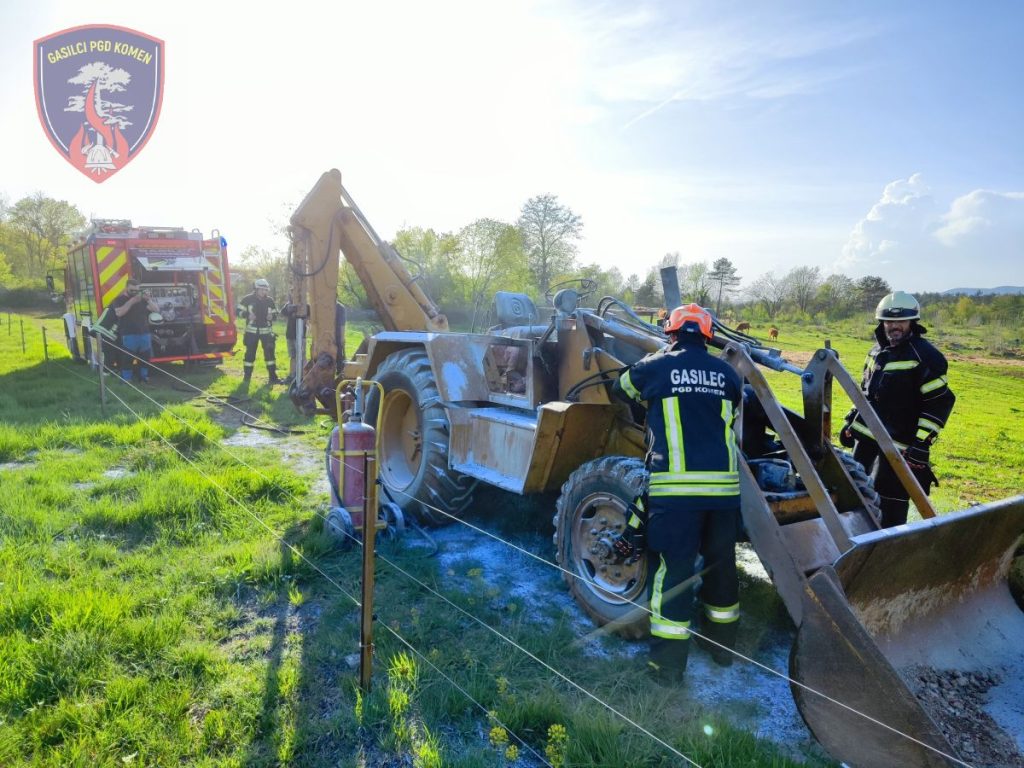 Ob 17.40 je pri naselju Krajna vas, občina Sežana, na polju gorel rovokopač. Požar so pred našim prihodom z gasilniki omejili občani, gasilci ZGRS Sežana in PGD Komen smo zavarovali mesto požara, opravili pregled s termokamero in z vodo ohladili motorni del rovokopača. Na intervenciji je sodelovalo 7 gasilcev PGD Komen z enim vozilom. Enajst gasilcev je bilo v pripravljenosti v gasilskem domu. Iz poklicne gasilske enote ZGRS Sežana so sodelovali trije gasilci z enim vozilom.