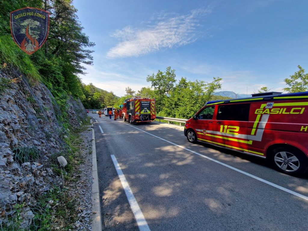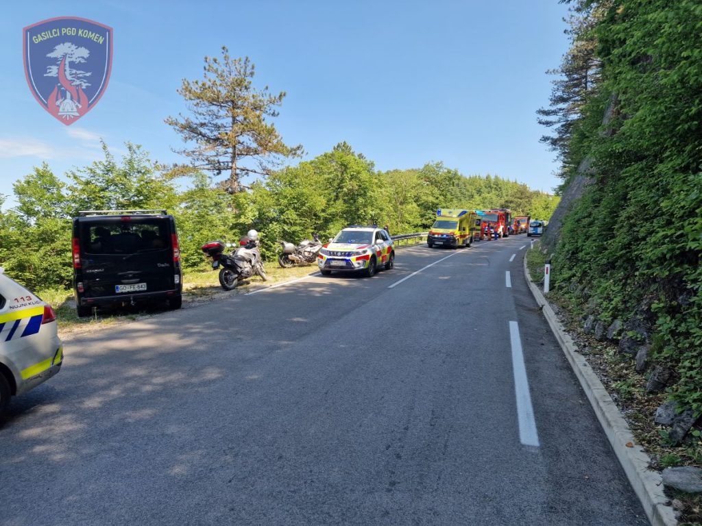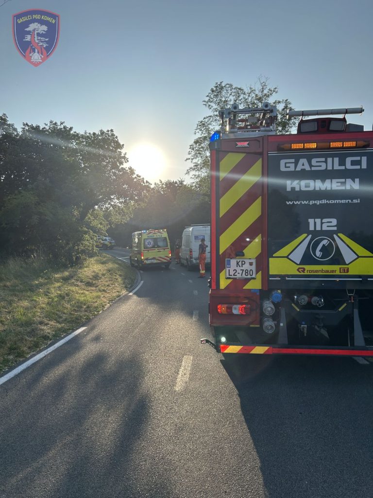 Ob 14.49 je na cesti Štanjel – Branik, občina Komen, padel motorist. Posredovali smo gasilci PGD Komen in ZGRS Sežana, ki smo kraj dogodka požarno in prometno zavarovali, odklopili akumulator, z vpojnim sredstvom posuli razlite motorne tekočine, nudili pomoč reševalcem NMP Sežana ter motorno kolo odstranili s cestišča. V prometni nesreči se je lažje telesno poškodoval motorist, ki so ga reševalci odpeljali na nadaljnje zdravljenje. Na intervenciji je sodelovalo 7 gasilcev PGD Komen z enim vozilom, 4 gasilci v civilu, ki so bili v bližini dogodka, 3 gasilci z enim vozilom iz ZGRS Sežana, reševalci NMP Sežana in policija. V gasilskem domu je bilo v pripravljenosti še 9 gasilcev.