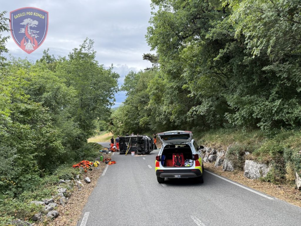 Ob 15.40 je med naseljema Klanec in Gorjansko, občina Komen, prišlo do prometne nesreče, v kateri se je eno vozilo prevrnilo na bok. Na intervenciji smo sodelovali gasilci PGD Komen ZGRS Sežana, ki smo prometno in protipožarno zavarovali kraj dogodka, vozilo stabilizirali, odklopili vir napajanja in posuli iztekle tekočine. Poškodovani osebi smo pomagali pri izstopu iz vozila, v nadaljnjo oskrbo pa so ga prevzeli reševalci NMP Sežana. Na intervenciji je sodelovalo 7 gasilcev PGD Komen z enim vozilom, 4 gasilci v civilu, ki so bili v bližini dogodka, 3 gasilci z enim vozilom iz ZGRS Sežana, reševalci NMP Sežana in policija. V gasilskem domu je bilo v pripravljenosti še 6 gasilcev.