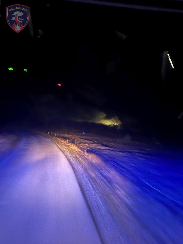 Ob 2.59 je v bližini naselja Brje pri Komnu, občina Komen, osebno vozilo zapeljalo iz vozišča pri tem se je poškodoval voznik. Posredovali smo gasilci PGD Komen in ZGRS Sežana, kateri smo zavarovali in razsvetljevali mesto nesreče, nudili prvo pomoč poškodovanemu vozniku do prihoda reševalcev NMP ter nudili pomoč pri prenosu v reševalno vozilo, stabilizirali in izvlekli vozilo in odklopili akumulator. Poškodovana oseba je bila prepeljana na nadaljnje zdravljenje v SB Šempeter. Na intervenciji je sodelovalo 7 gasilcev PGD Komen z enim vozilom, trije gasilci PGD Komen, ki so bili v bližini dogodka, 4 gasilci z enim vozilom iz ZGRS Sežana, reševalci NMP Sežana in policija. V gasilskem domu so bili v pripravljenosti še 3 gasilci.