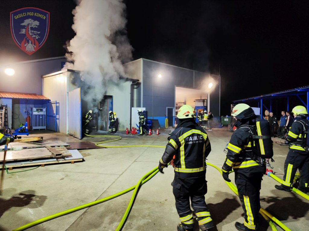 Ob 20.15 je v naselju Hruševica, občina Komen, prišlo do vžiga zunanjih elektromotorjev od lakirnice na zunanji steni industrijske hale. Do prihoda gasilcev so delavci uspešno omejili požar z uporabo ročnih gasilnikov. Posredovali smo gasilci PGD Komen in ZGRS Sežana, ki smo dokončno pogasili požar, prezračili prostor, delno sanirali požarišče ter ga pregledali s termovizijsko kamero. Na kraju je bila prisotna tudi policija in delavec elektro primorske. Na intervenciji je sodelovalo 19 gasilcev PGD Komen s tremi vozili, 5 gasilcev s tremi vozili iz ZGRS Sežana. V gasilskem domu je bilo v pripravljenosti še 11 gasilcev.