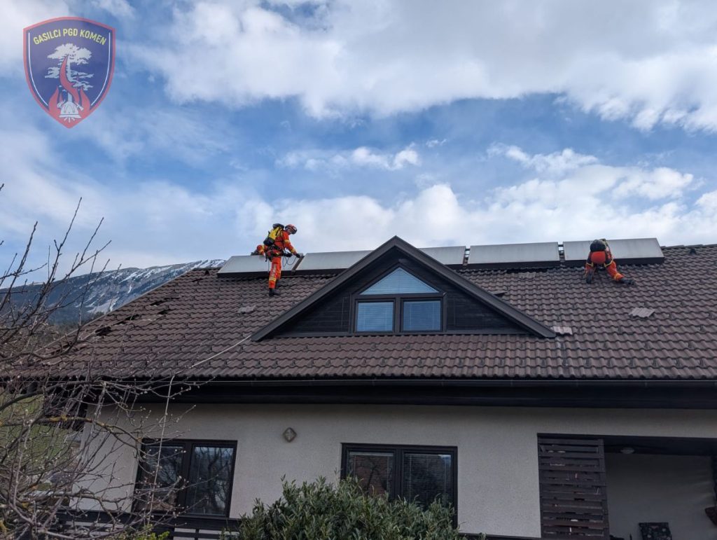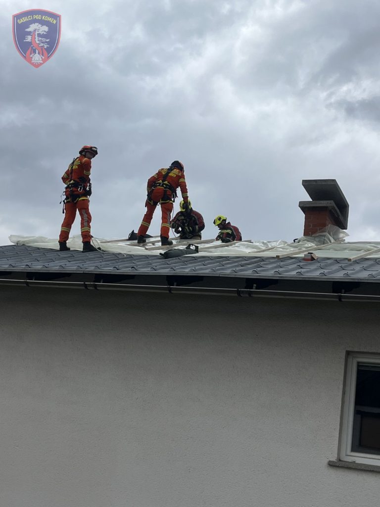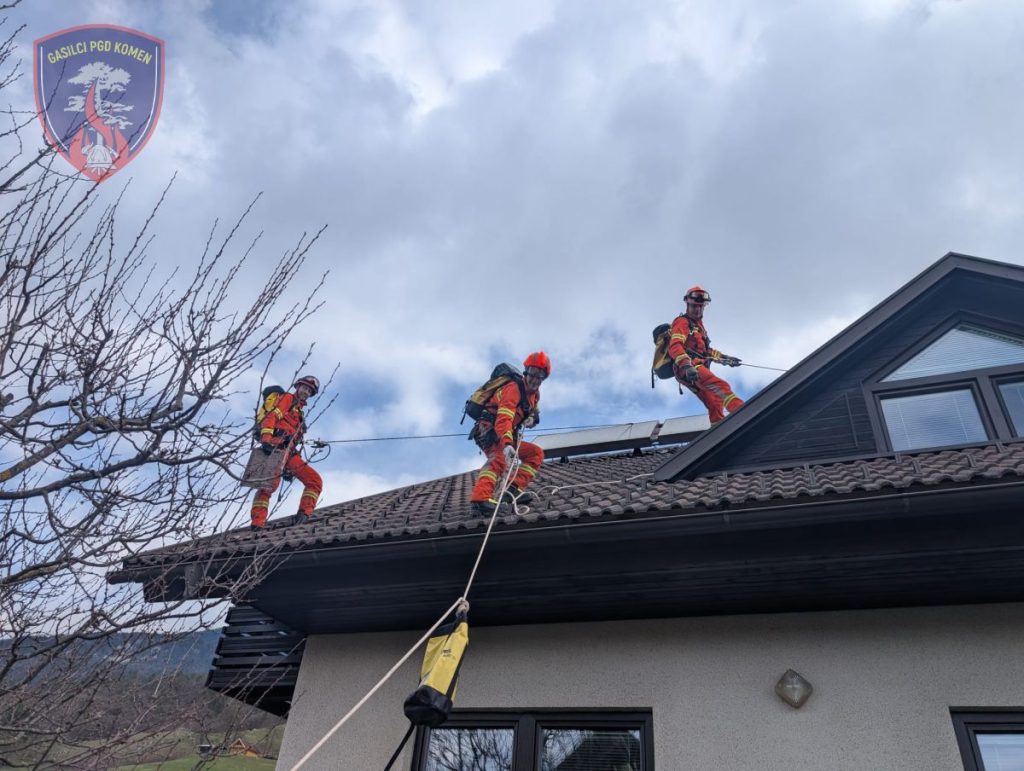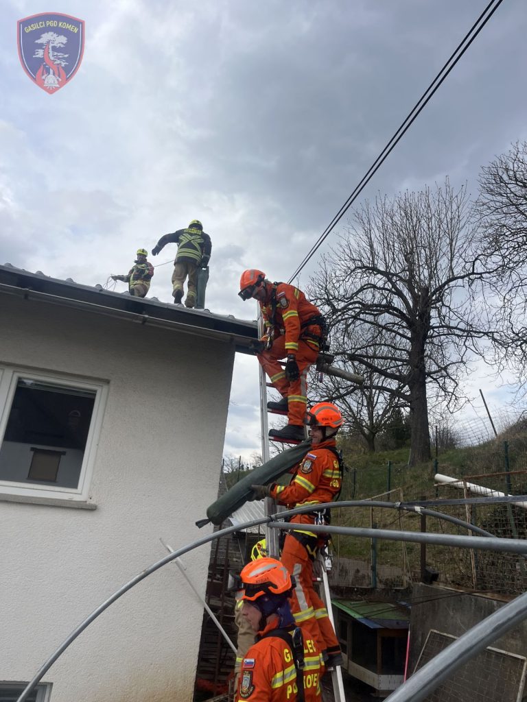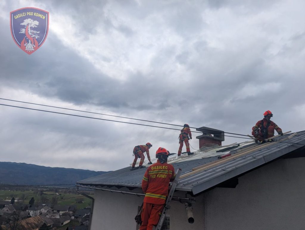 V nedeljo, 29. marca 2026, je v zgodnjih jutranjih urah Obalno-kraška gasilska regija odšla na pomoč na Gorenjsko. Na podlagi napotila Gasilske zveze Slovenije sta bila aktivirana dva gasilska voda za posredovanje ob posledicah neurja, z namenom pomoči kolegom iz Gasilske zveze Gorenjska pri odpravi škode zaradi močnega vetra. Gasilci smo posredovali v kraju Selo pri Žirovnici, kjer smo skupaj z enotami Obalno-kraške regije prekrivali poškodovane strehe objektov z novo kritino. S pomočjo vrvne tehnike in ročnega orodja smo uspešno sanirali 14 objektov ter pregledali še dodatnih 26 objektov. Sodelovali smo tudi pri odstranjevanju odpadnega materiala, ki smo ga odlagali v za to namenjene prikolice. Iz PGD Komen je na intervenciji sodelovalo 7 gasilcev z enim vozilom.